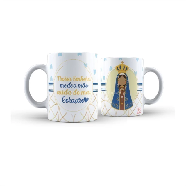 Caneca de porcelana Com Caixa-Nossa Senhora Me de a mão Cuida do meu Coração 325ml