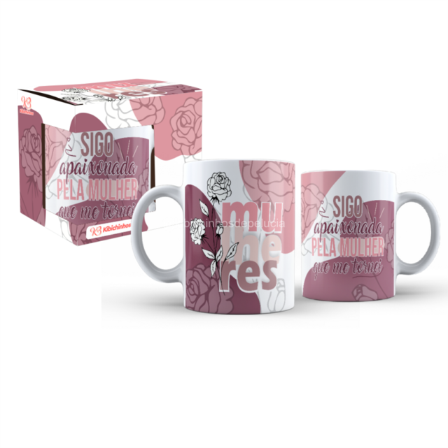 Caneca Porcelana Com Caixa Estampada -Sigo Apaixonada 325ml