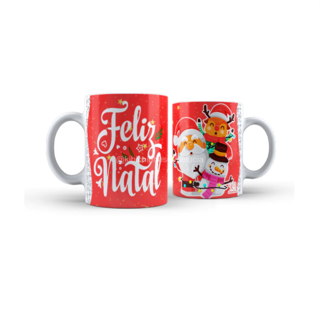 Caneca Porcelana Natal Com Caixa-Estampada Papai Noel e Boneco De Neve 325 ml